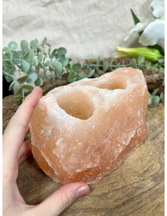 Zoutsteen theelichthouder dubbele gaten