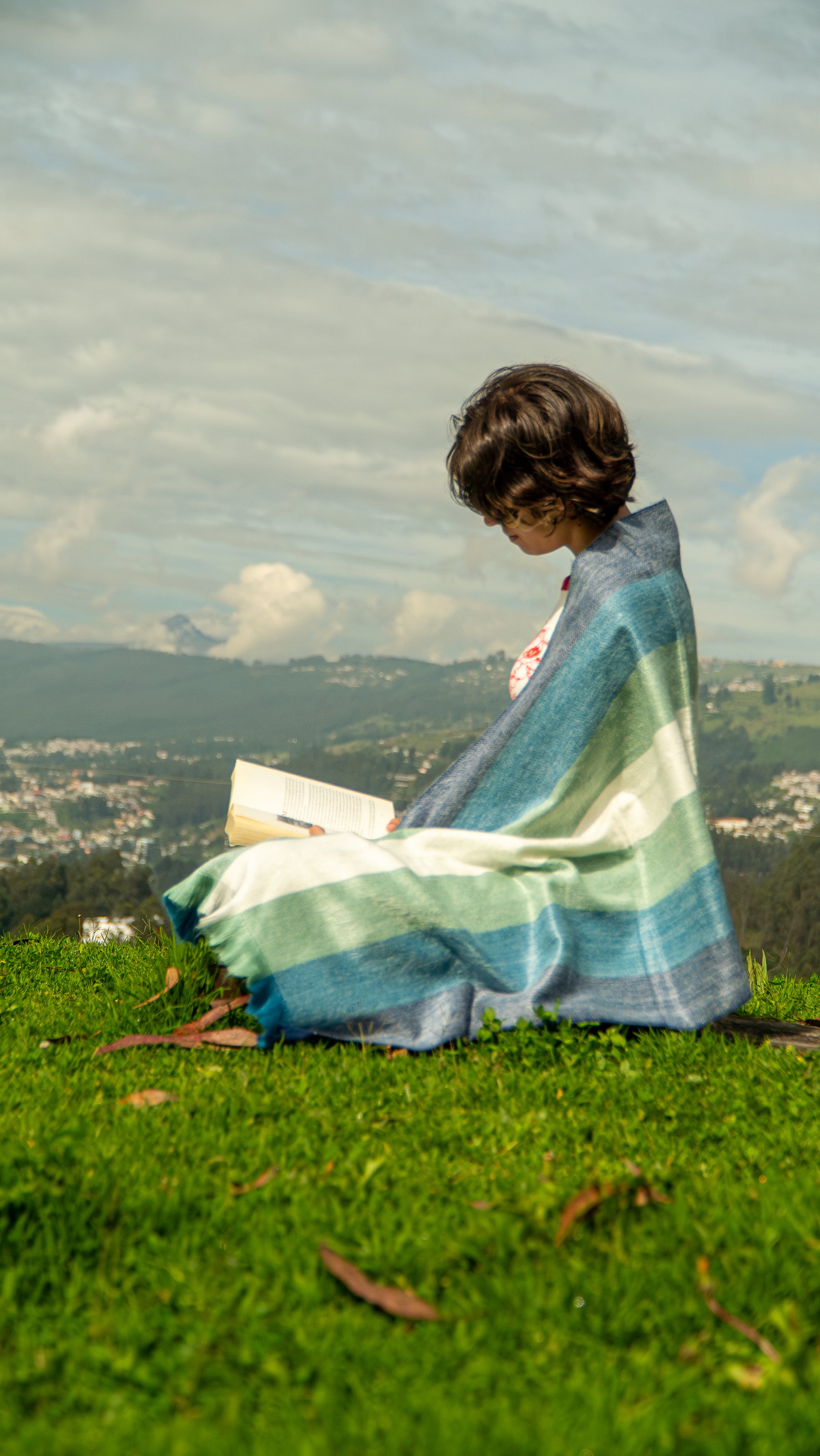 Deze omslagdoek is een zachte, lichtgewicht accessoire in warme, natuurlijke tinten. Gemaakt in Ecuador door lokale ambachtslieden, met traditionele weeftechnieken en oog voor detail.