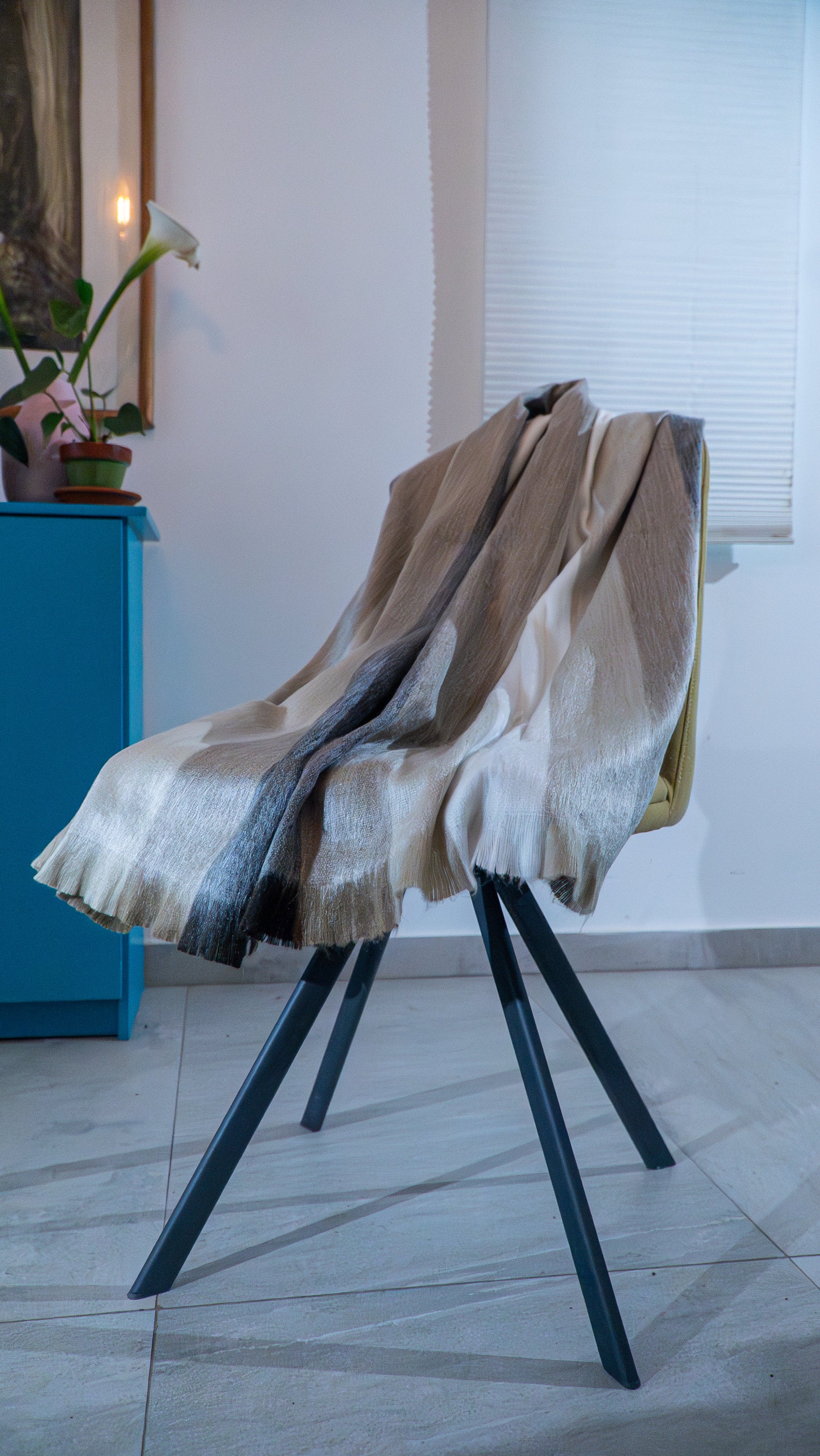 Deze omslagdoek is een zachte, lichtgewicht accessoire in warme, natuurlijke tinten. Gemaakt in Ecuador door lokale ambachtslieden, met traditionele weeftechnieken en oog voor detail.
